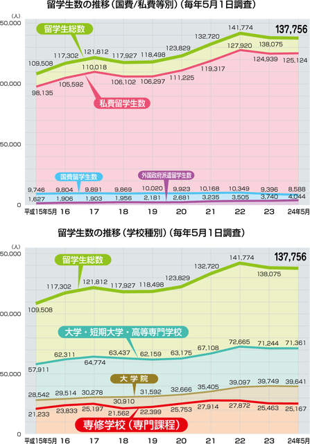 | データ資料: | 「平成24年度外国人留学生在籍状況調査結果」独立行政法人日本学生支援機構 |