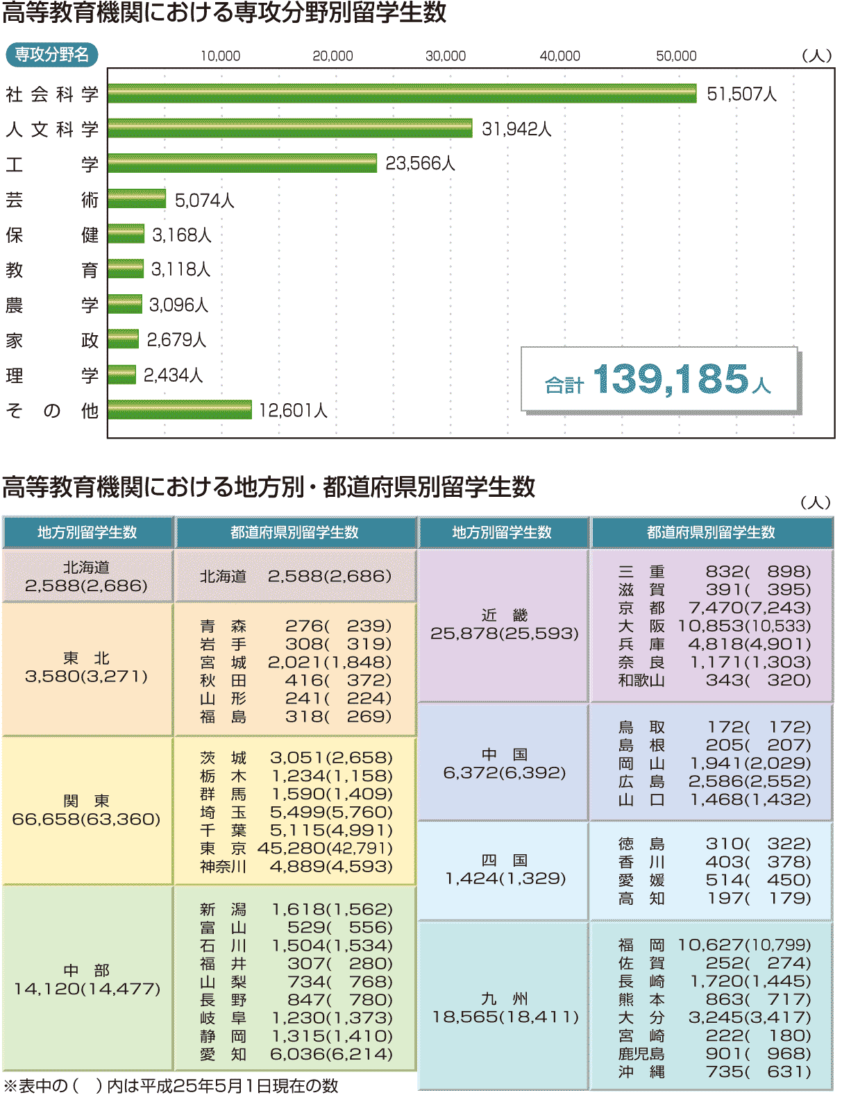 | データ資料: | 「平成26年度外国人留学生在籍状況調査結果」独立行政法人日本学生支援機構 |