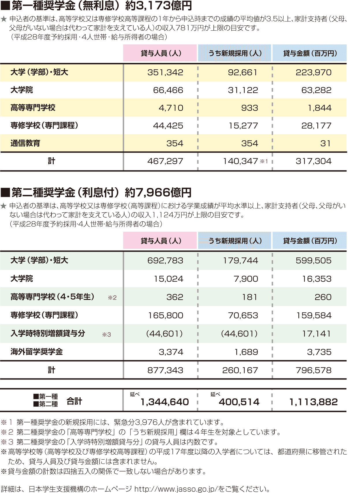 | データ資料: | 日本学生支援機構2015概要 奨学金貸与事業<日本学生支援機構> |