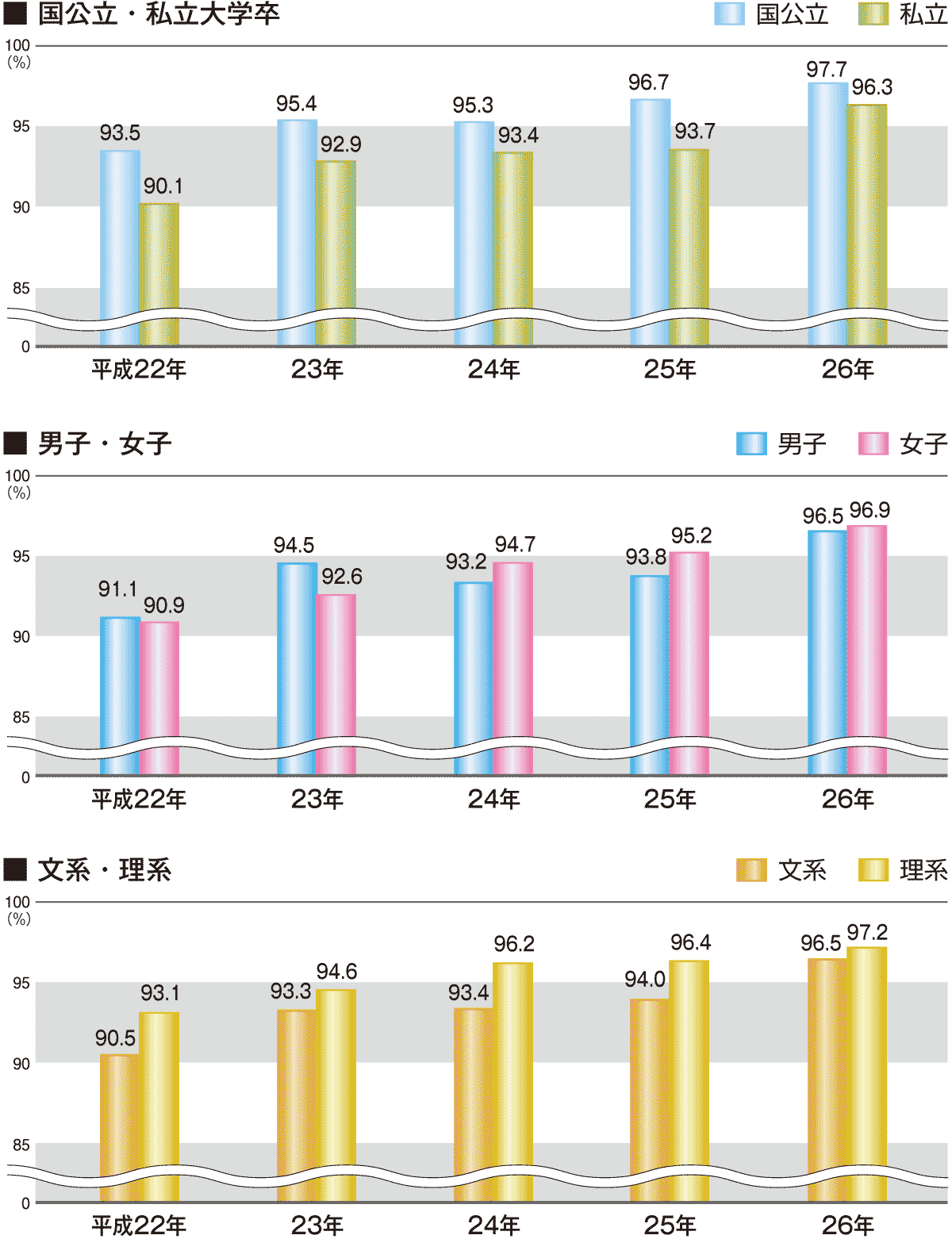 | 5年間の就職率*の推移(平成22年~26年) | *就職率は、就職希望者のうち、就職した人の割合です。 |