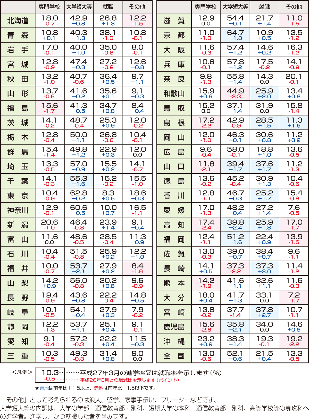 | データ資料: | 平成27年度学校基本調査速報(平成27年8月発行)より <文部科学省生涯学習政策局政策課調査統計企画室発行> |