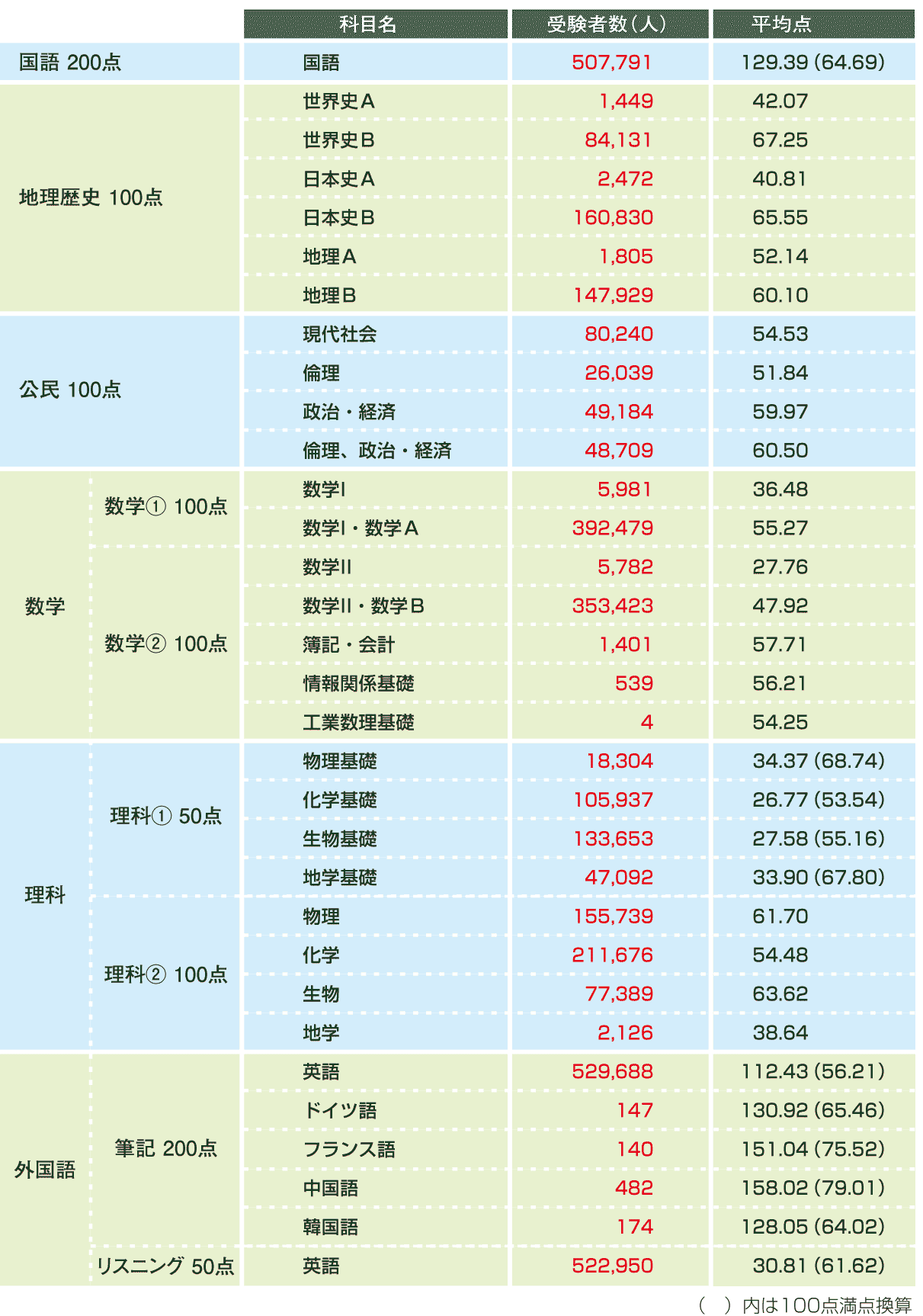 | データ資料: | 「平成28年度大学入試センター試験実施結果の概要」より 独立行政法人大学入試センターホームページにて表にして作成 |