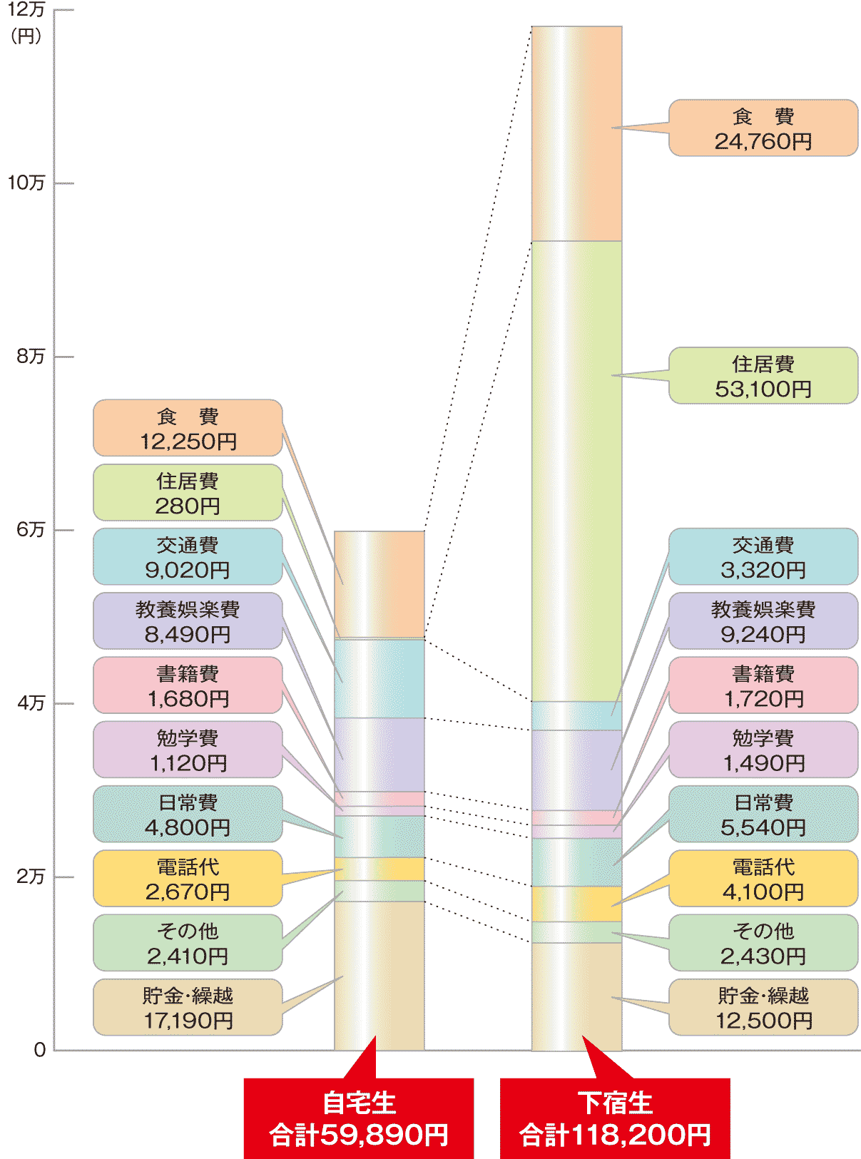| 自宅生と下宿生の1ヶ月の生活費平均 |