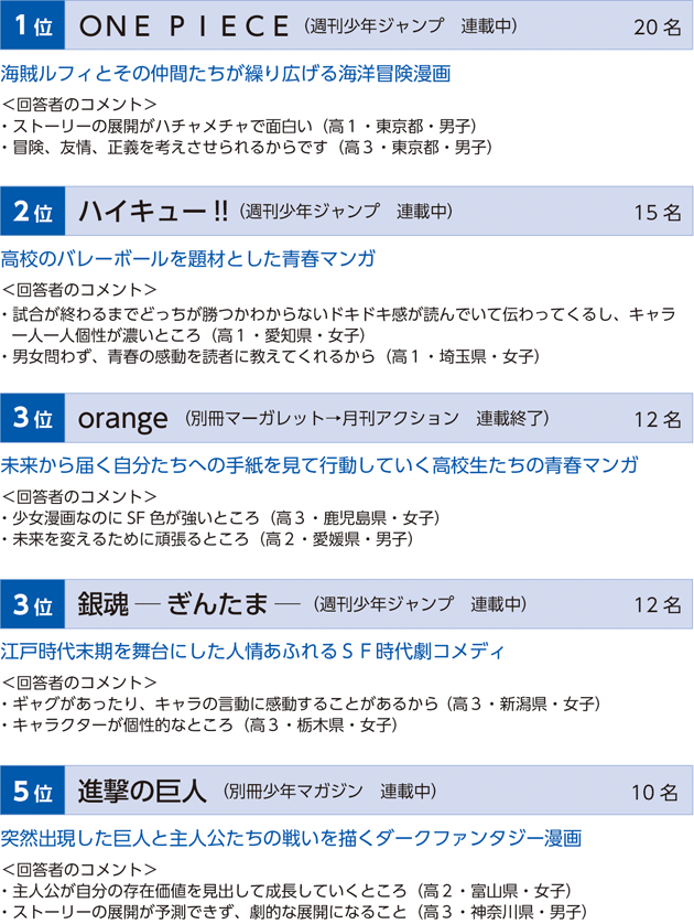 | 高校生のライフスタイル(2) 好きなマンガ |