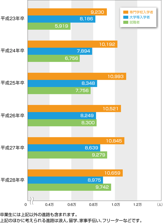 | データ資料: | 平成23年~28年度の学校基本調査(文部科学省ホームページ)よりグラフにして作成 |