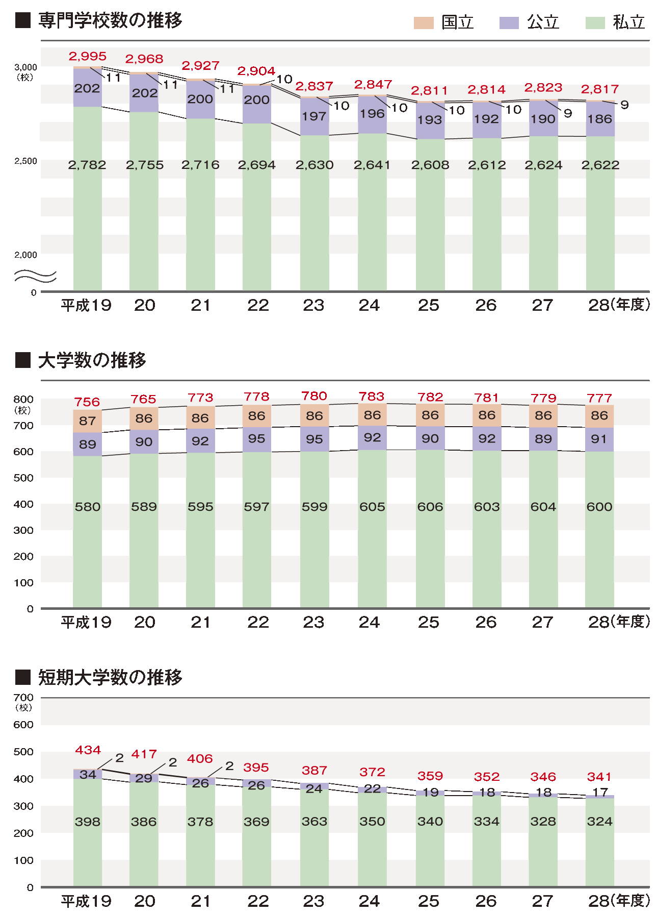 | データ資料: | 平成19~28年度の学校基本調査(文部科学省ホームページ)よりグラフにして作成 |