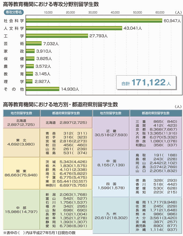| データ資料: | 「平成28年度外国人留学生在籍状況調査結果」 独立行政法人日本学生支援機構のホームページよりグラフにして作成 |