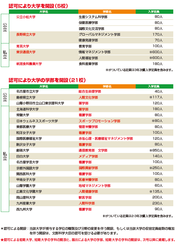 | データ資料: | 平成30年度開設予定の大学等の設置に係る答申について (文部科学省ホームページ)より表にして作成 |