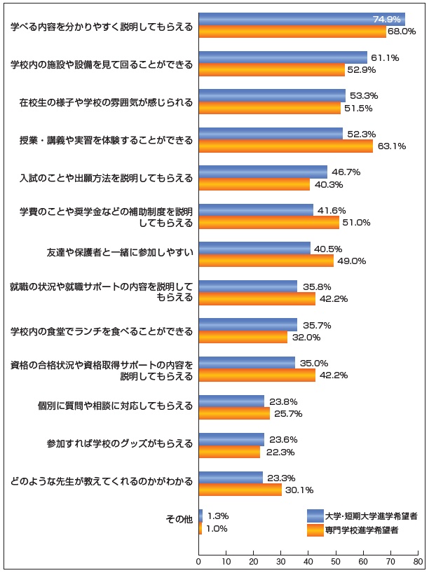 | 大学・短期大学や専門学校の「オープンキャンパス」について、「参加したい」と思える ものを以下の選択肢から選択してもらいました(複数選択可)。 |