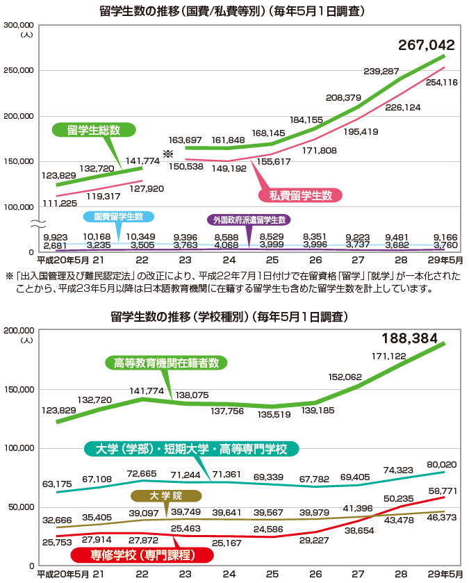| 調査対象: | 留学ビザにより日本の高等教育機関及び日本の大学に入学するための 準備教育課程を設置する教育施設及び日本語教育機関に在籍する外国人学生 |