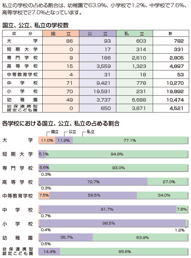 | データ資料: | 平成30年度学校基本調査(文部科学省ホームページ・ 平成30年12月25日発表)より表・グラフにして作成 |