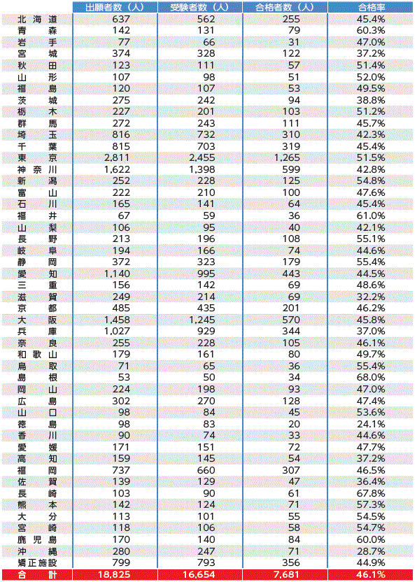 | データ資料: | 令和2年度第1回・第2回高等学校卒業程度認定試験 実施結果について (文部科学省ホームページ)より表にして作成 |