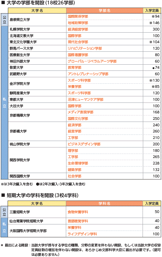 | データ資料: | 「令和3年度開設予定の大学の学部等の設置届出一覧」 文部科学省ホームページより表にして作成 |