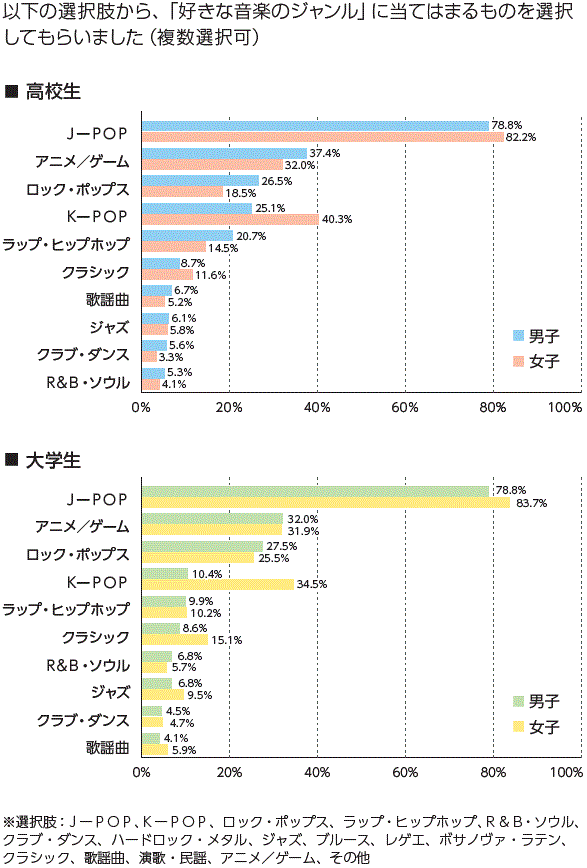 | 回答者数: | 高校生 男子358人/女子675人 大学生 男子222人/女子423人 |