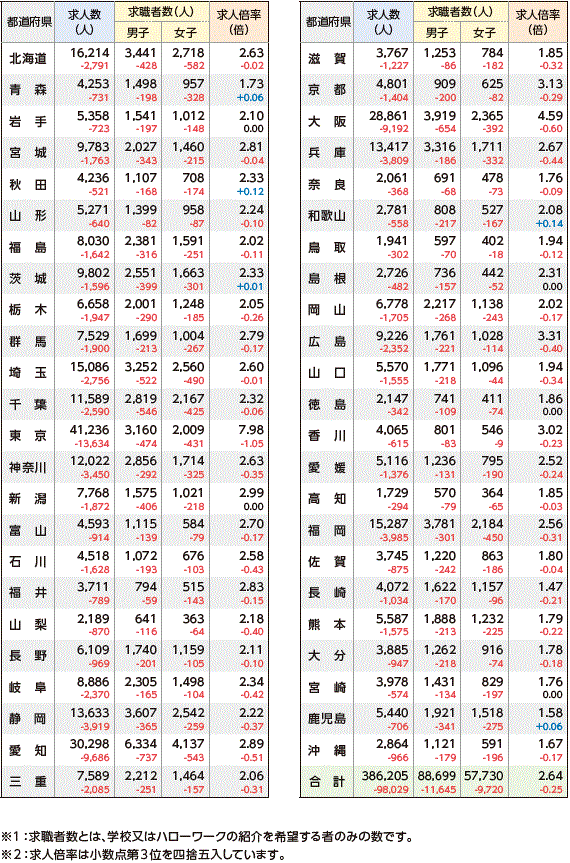 | データ資料 | : | 令和2年度「高校・中学新卒者のハローワーク求人に係る求人・求職・就職内定状況」(令和3年3月末現在) 厚生労働省のホームページよりグラフにして作成 |