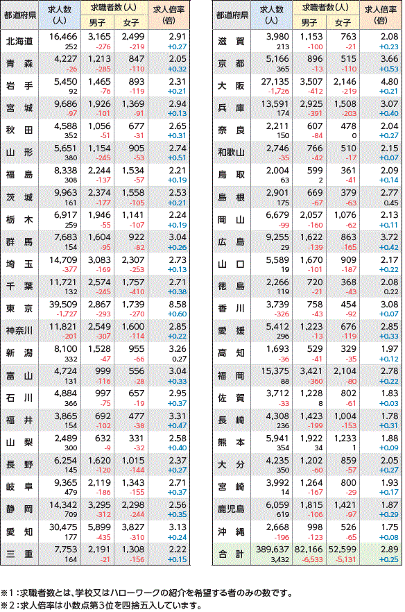 | データ資料 | : | 令和3年度「高校・中学新卒者のハローワーク求人に係る求人・求職・就職内定状況」(令和4年3月末現在)厚生労働省のホームページより表にして作成 |