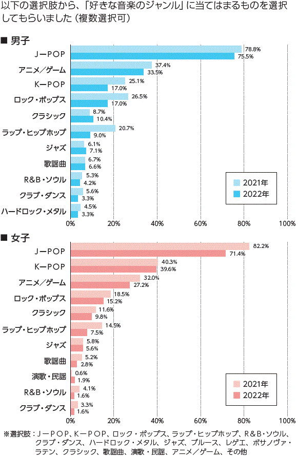 | 回答者数 | : | 高校生 男子212人/女子427人(2021年は男子358人/女子675人) |