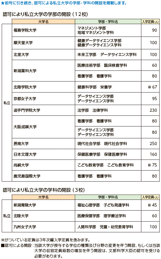 | データ資料 | : | 令和5年度開設予定大学等一覧 (文部科学省ホームページ)より表にして作成 |