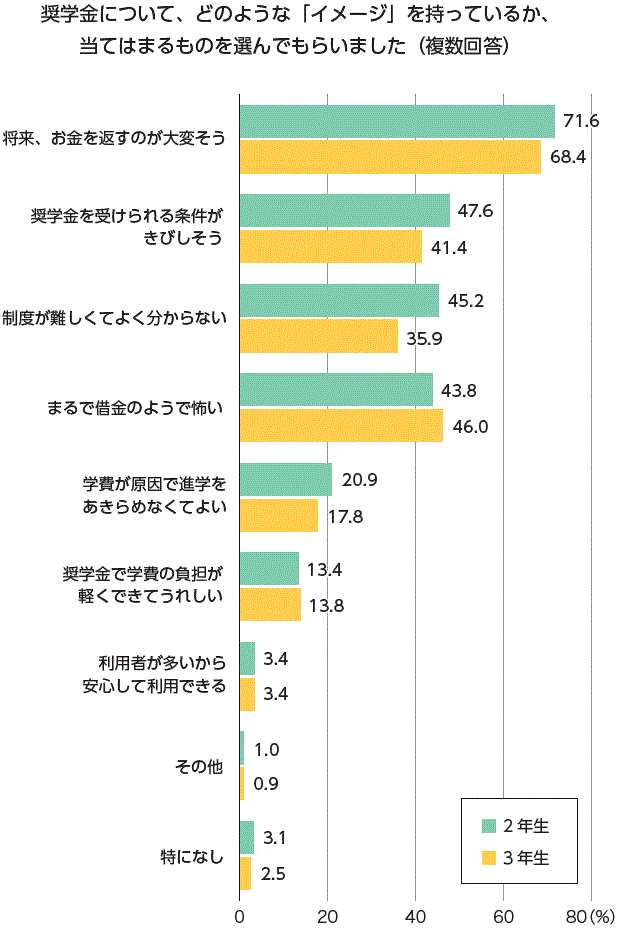 | 調査対象 | : | 大学短大、専門学校への進学を希望する高校生618名 (2年生:292名、3年生:326名) |
