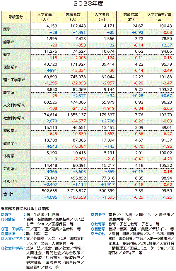| データ資料 | : | 「令和5(2023)年度私立大学・短期大学等入学志願動向」 日本私立学校振興・共済事業団 私学振興事業本部のホームページより表にして作成 |