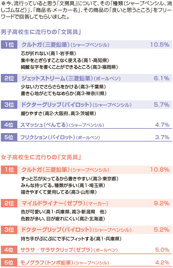 | データ資料 | : | JSインターネット調査「高校生ライフランキング」集計結果より |