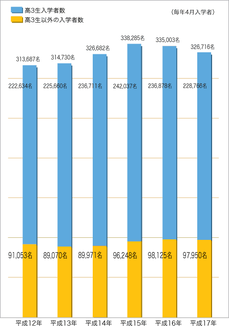 高3生以外の専門学校入学者数推移 |