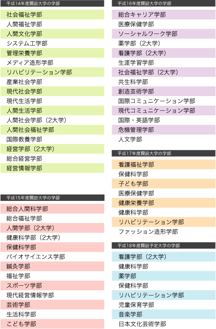 データ資料:各年の開設予定大学等一覧<文部科学省> |