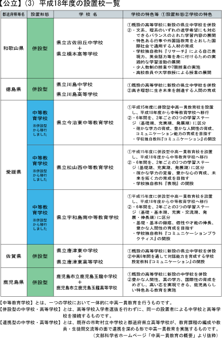 平成18年度設置の中高一貫教育校一覧3