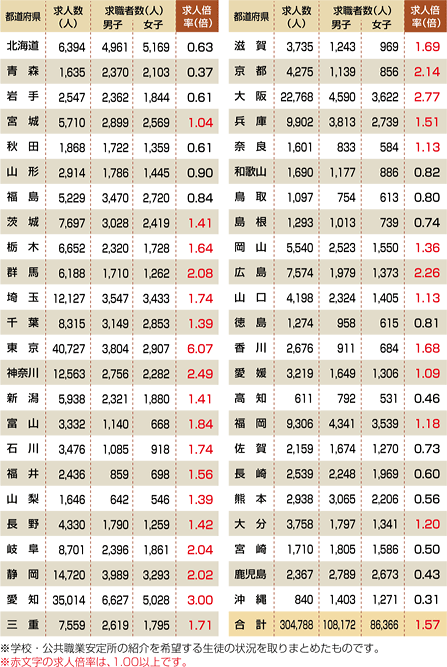 | 発表時期:平成19年11月 データ資料:平成19年度高校・中学新卒者の就職内定状況等(平成19年9月末現在)について <厚生労働省> |