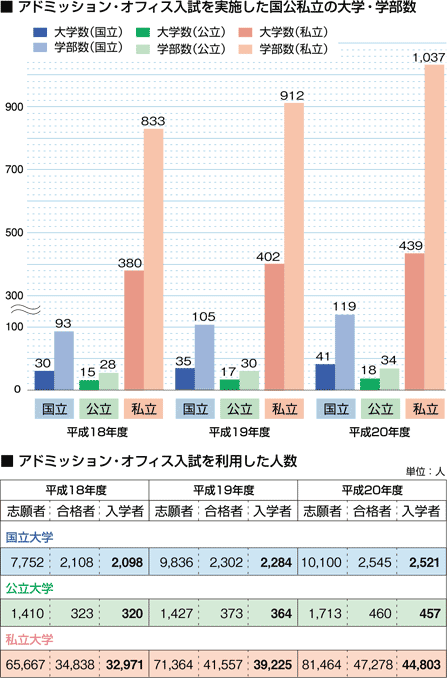 | 発表時期:平成19年9月25日、平成20年9月26日 データ資料:国公私立大学入学者選抜実施状況の概要<文部科学省> |
