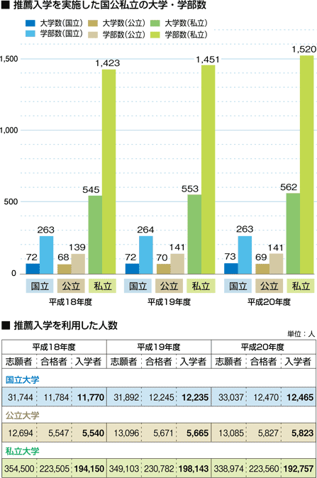 | 発表時期:平成19年9月25日、平成20年9月26日 データ資料:国公私立大学入学者選抜実施状況の概要<文部科学省> |