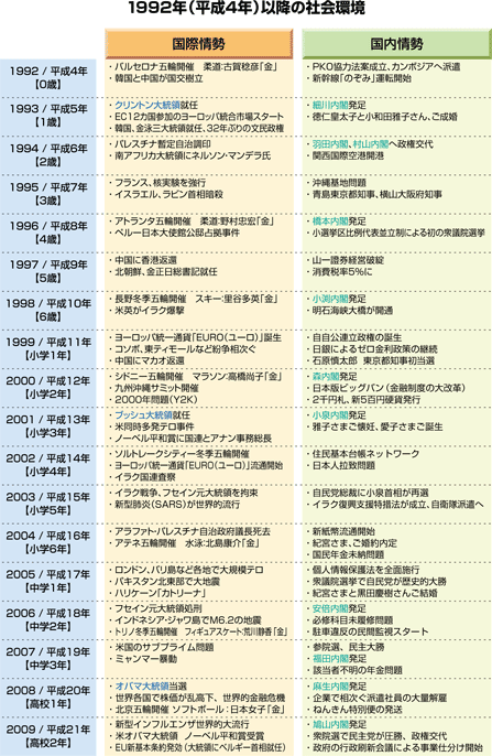 バルセロナ五輪が開催された年に、現在の高校3年生は生まれました。 彼らの育った時代背景を理解するための一助として、ご高覧いただければ幸いです。 |