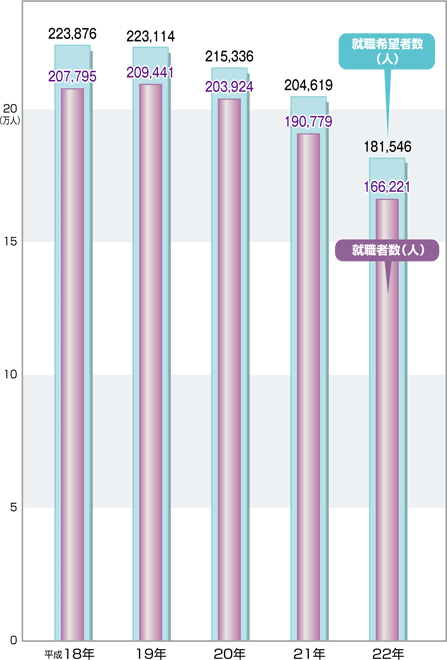 | データ資料: | 「平成22年3月高等学校卒業者の就職状況(平成22年3月末現在)に関する調査について」 <文部科学省初等中等教育局児童生徒課> |