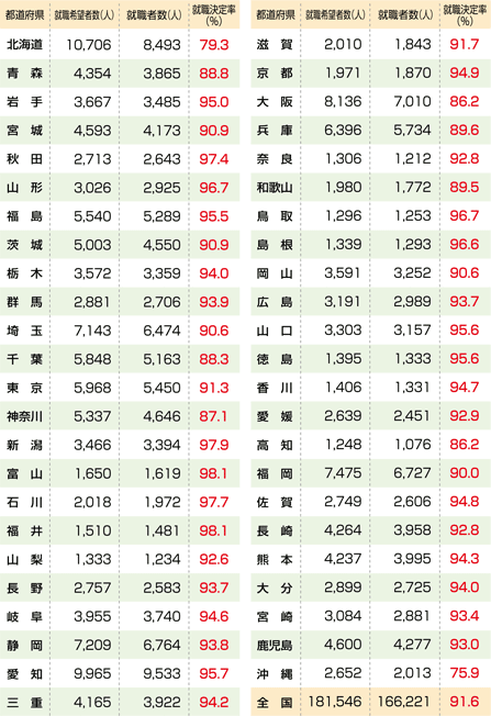 | 平成22年(2010年)3月高等学校卒業者の就職状況 |