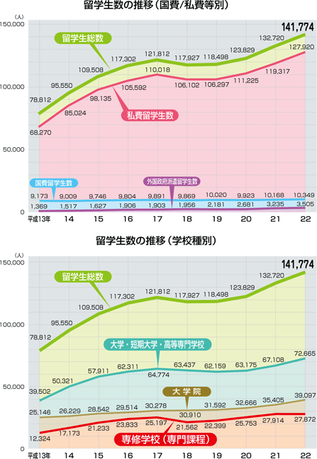 | データ資料: | 「平成22年度外国人留学生在籍状況調査結果」独立行政法人日本学生支援機構 |