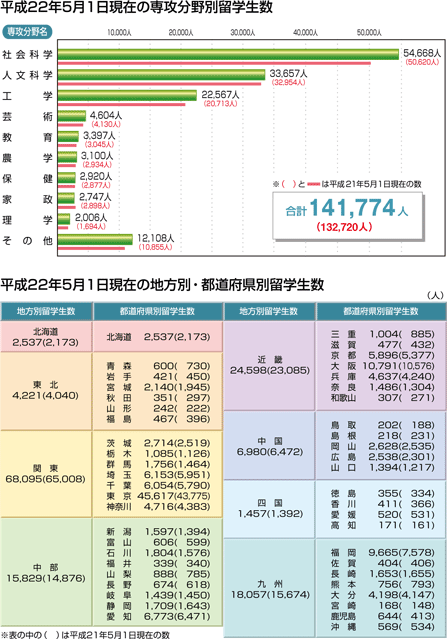 | データ資料: | 「平成22年度外国人留学生在籍状況調査結果」独立行政法人日本学生支援機構 |