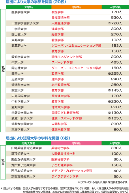 | データ資料: | 平成23年度開設予定の大学の学部等の設置届出一覧 |