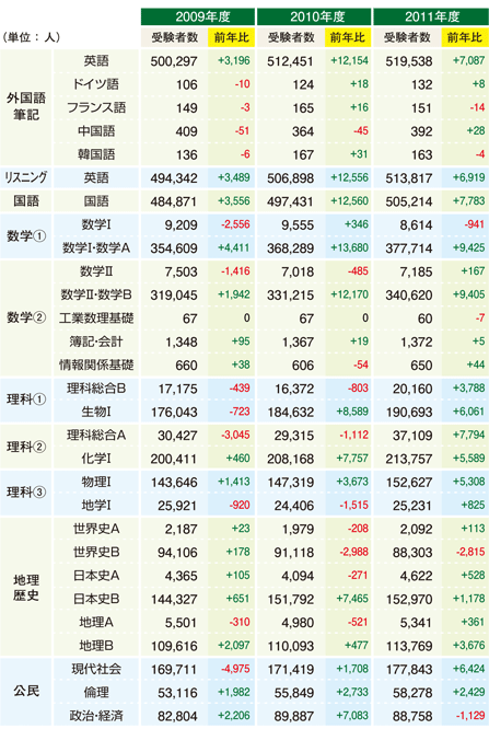 | データ資料: | 「平成23年度大学入試センター試験実施結果の概要」より <独立行政法人大学入試センター> |