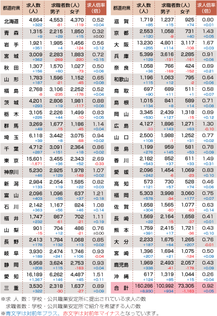 | データ資料: | 平成23年度高校・中学新卒者の求人・求職・内定状況(平成23年9月末現在)について <厚生労働省> |