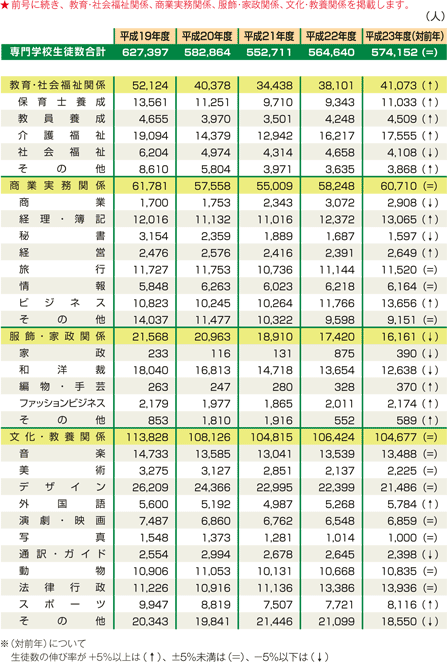 | データ資料: | 平成19~23年度学校基本調査報告書 <文部科学省生涯学習政策局調査企画課> |