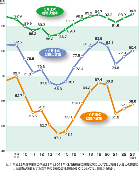 | 調査時期: | 各年の10月末現在、12月末現在、翌年3月(卒業月)末現在 |