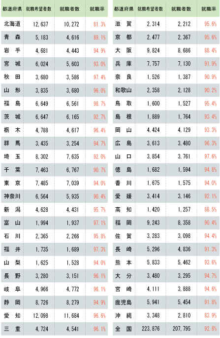 出典:「平成18年3月高等学校卒業者の就職状況(平成18年3月末現在)に関する調査」