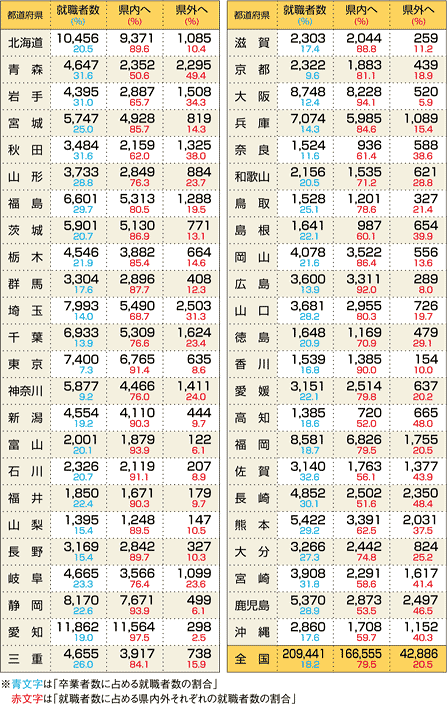出 典:「平成19年3月高等学校卒業者の就職状況(平成19年3月末現在)に関する調査」