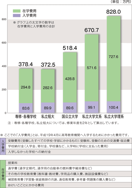 データ資料 : 教育費負担の実態調査(勤務者世帯:平成19年度)