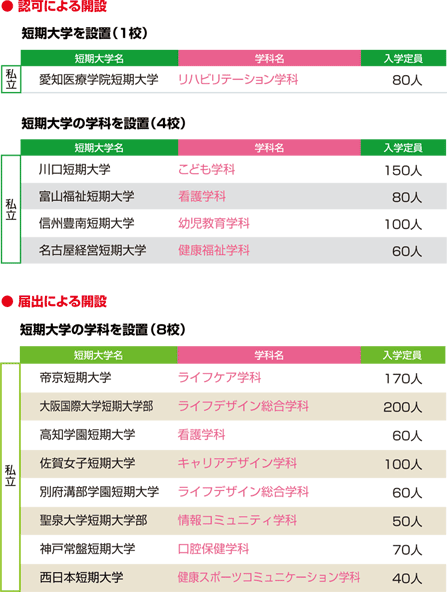 データ資料:平成20年度開設予定の大学の学部等の設置届出一覧