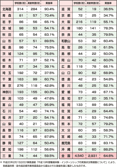 データ資料:平成19年度職場体験・インターンシップ実施状況等調査結果より