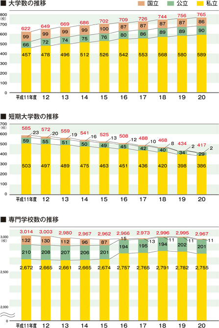 ※平成20年度は、平成20年度学校基本調査速報(平成20年8月発行)より