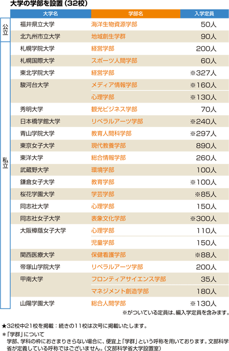 平成21年度開設予定の大学の学部等の設置届出一覧