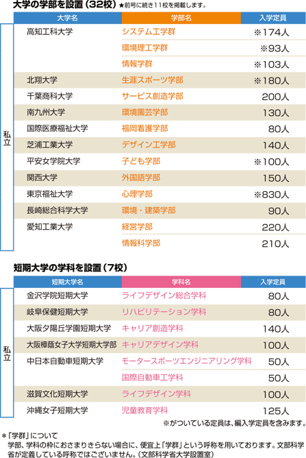 平成21年度開設予定の大学の学部等の設置届出一覧