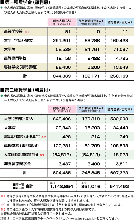 日本学生支援機構が平成21年度に予定している奨学金の内訳となります。